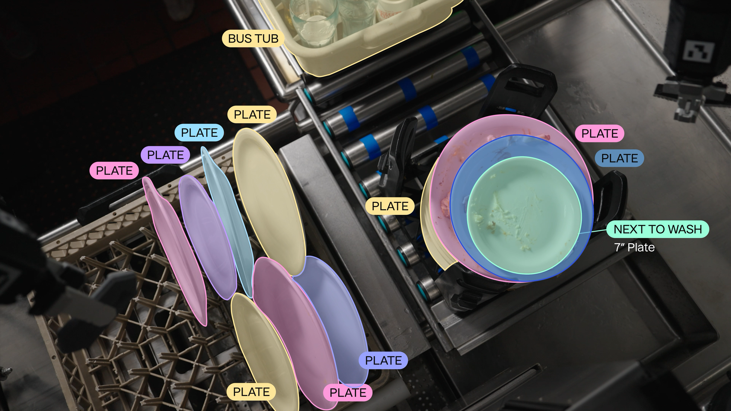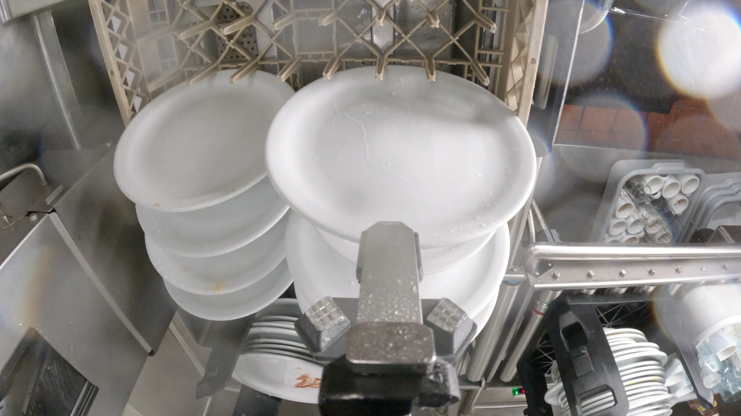 Our robots are driven by advanced neural networks trained on thousands of hours of real dishwashing. With millimeter-level 3D perception, they can identify dishes in messy piles, grasp them reliably, and wash them to commercial standards.