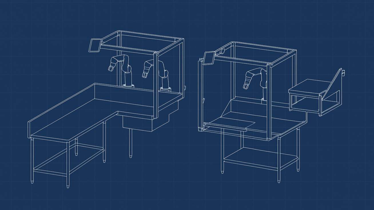 • Our software is agnostic to the hardware it runs on: we can use different robot arms, and those arms can be mounted to the wall or embodied with wheels or legs. We currently use stationary arms to provide the highest dishwashing throughput in the least amount of space.